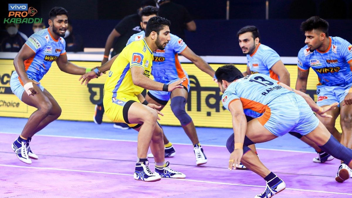 All-rounder Mohammad Nabibakhsh went in to raid against a defence of three and managed to tag them all before getting his hand past the midline to inflict the game’s first All Out in an incredible fashion.
