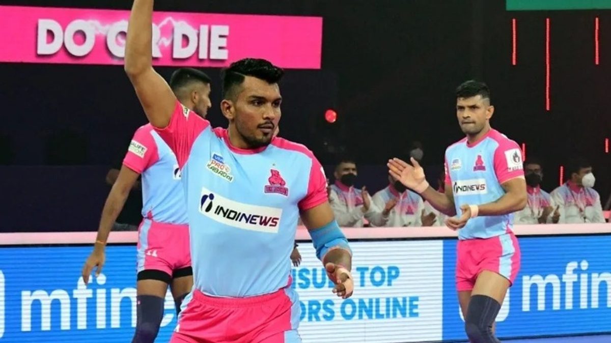 Arjun Deshwal of Jaipur Pink Panthers in action against Bengaluru Bulls in Match 114 of VIVO Pro Kabaddi League Season 8