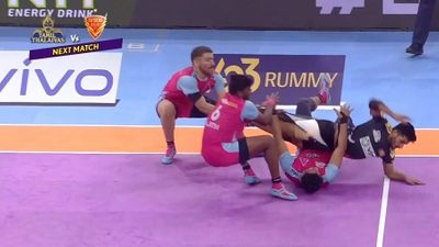 Jaipur Pink Panthers' captain Sunil Kumar led his side from the front as he bagged a High 5 despite his team's loss against Bengaluru Bulls. His performance also made him our Defender of the Day. Watch some of his best tackles here and keep watching vivo Pro Kabaddi Season 9, LIVE from 7:30 PM onwards, only on the Star Sports Network and Disney+Hotstar!