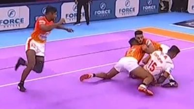 Saurabh Nandal’s Super Tackle against Tamil Thalaivas’ Vishal Chahal made a standout impression in Match 34 of the Pro Kabaddi League Season 11. Bengaluru Bulls secured their second win of the season with a score of 36-32. Relive this jaw-dropping Moment of the Day and watch PKL Season 11 every day from 7:30 PM, only on the Star Sports Network and Disney+ hotstar. Catch all the LIVE updates on prokabaddi.com or download the Pro Kabaddi Official App.